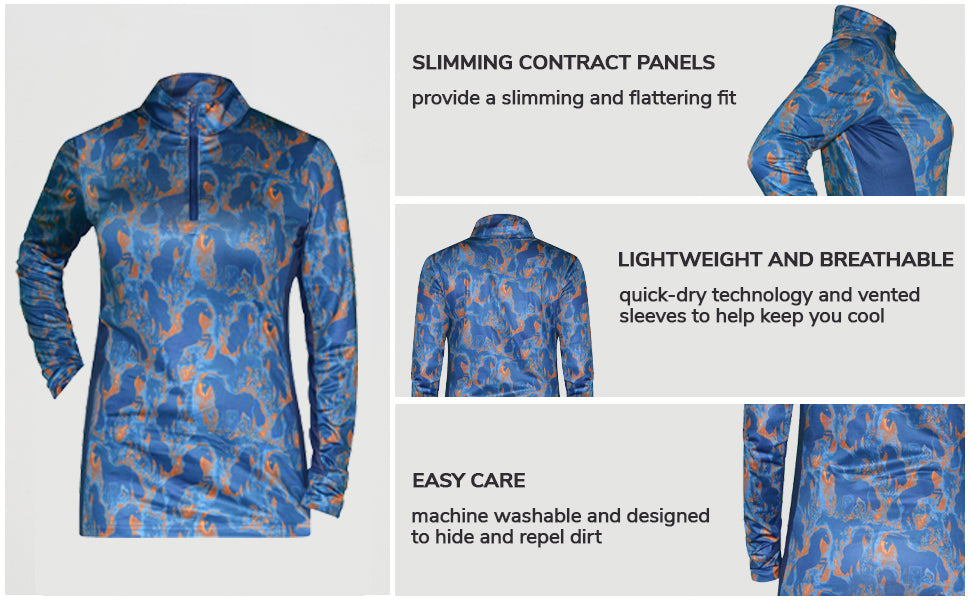 Our horseback riding apparel is designed for stylish, strong, and unique women who want to express their love of horses. Lightweight and breathable, it features quick-dry technology and vented sleeves to help keep you cool. The stylish cut and durable fabric will last you through all of your equestrian adventures.